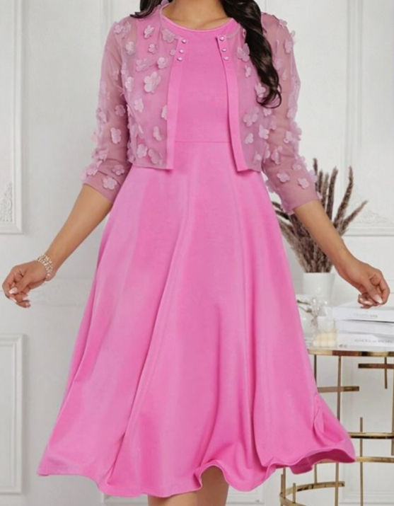 MAUVE PINK SLEEVELESS DRESS W/ 3D FLORAL MESH JACKET